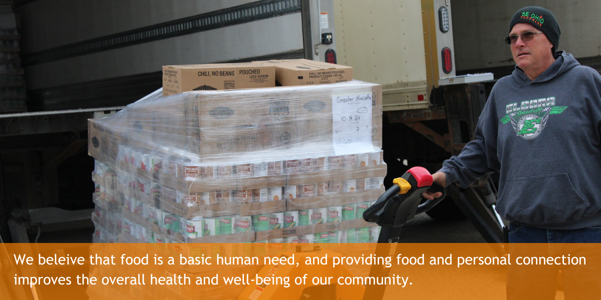 Sharing food with communities: The SE Ohio Foodbank secures food from donations, state and federal food assistance programs, and Feeding America - the national food bank network.